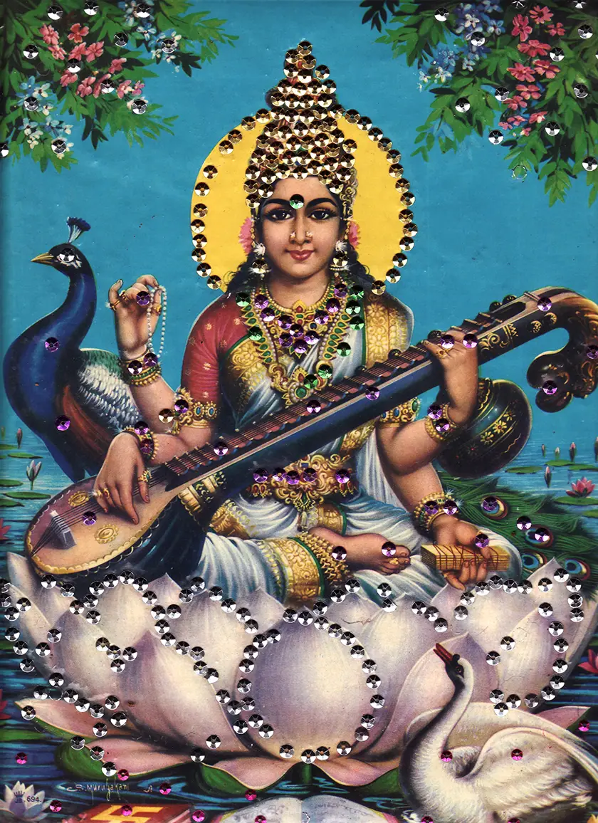 So whereas Kundalini is a Goddess of Knowledge, her sister, and indeed mirror reflection, Saraswati is the Goddess of Articulation, of Speech, and therefore also of music, dance, oratory, the arts, and learning in general. The sound, ‘sara’ is an onomatopoeic expression, to flow (like water), sarasarasara sounds like, resembles, the sound of water flowing over rocks, meeting the earth.
