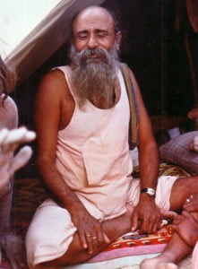 I climbed the hill on a path of large stones and as I got closer I saw that the lady’s pubic hair was mango trees. When I arrived at the threshold, an oasis appeared before me: it was a “meeting of worlds.” The gateway was made from bamboo decorated with sugar-cane stalks, fruit-laden branches hewn from a banana tree, green coconuts, marigolds, sparkly colored foils, and fire-engine red cloth. I watched two turbaned villagers march though it. As I entered I saluted the emaciated sadhu who sat there on an old blanket.